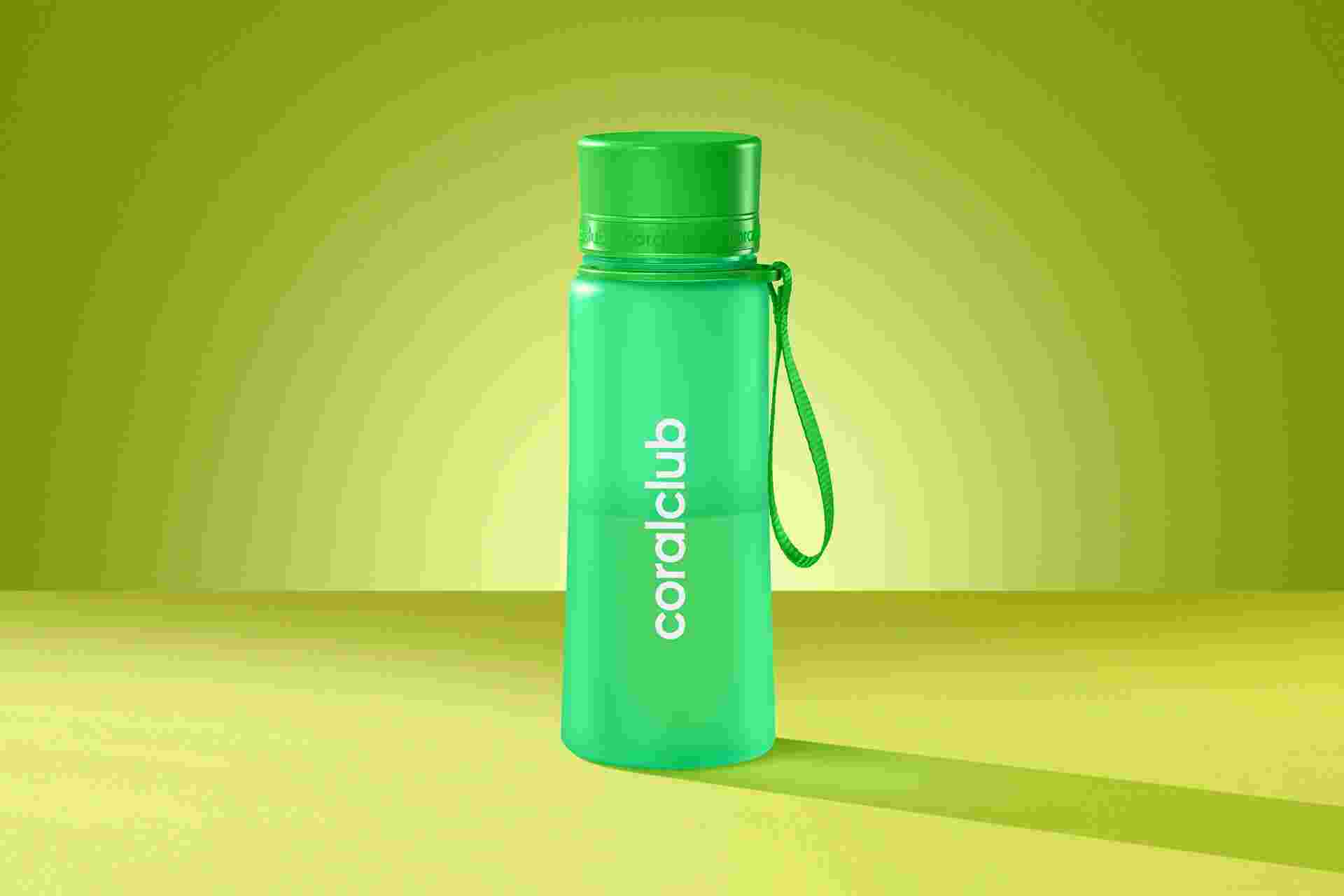 Туруктуу, экологиялык жактан таза жана жеңил, Coral Club бөтөлкөсү саякатка, басууга же спортко ылайыктуу.