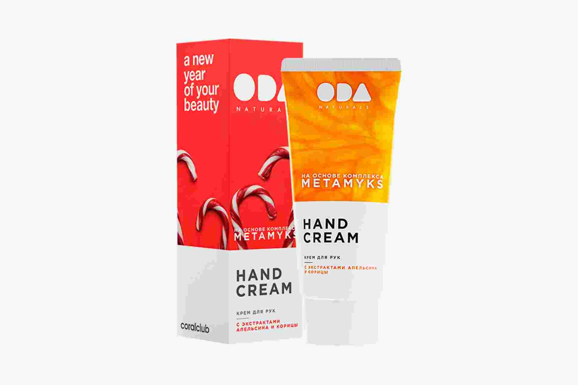 ODA Naturals Крем для рук с экстрактами апельсина и корицы в новогодней упаковке
