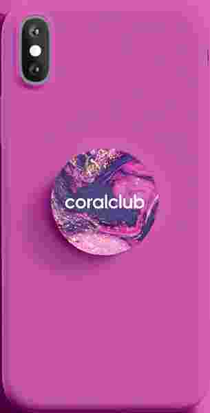 Coral Club логотиби бар попсокет сүйүктүү гаджеттериңизди ыңгайлуу колдонууга мүмкүндүк берет.