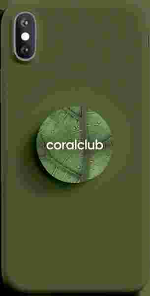 Coral Club логотиби бар попсокет сүйүктүү гаджеттериңизди ыңгайлуу колдонууга мүмкүндүк берет.
